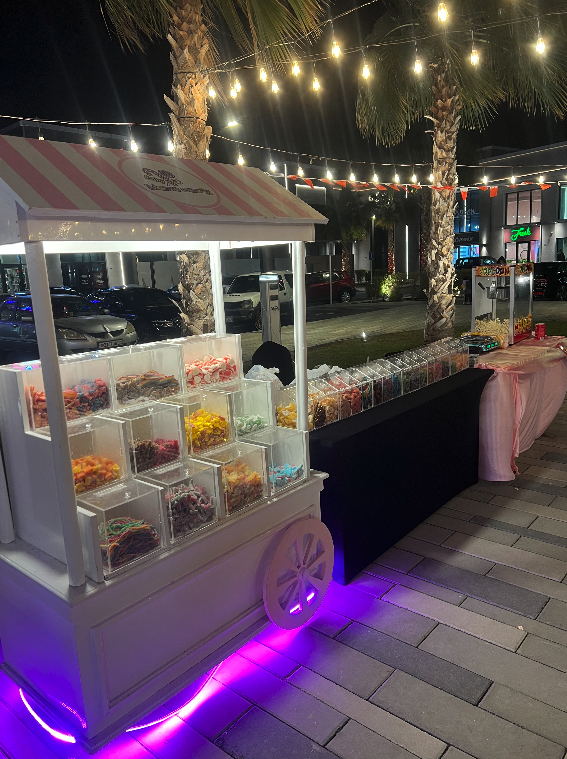 Candy Stand, Popcorn Station, Cotton Candy, Ice Cream, Nachos, mojitos